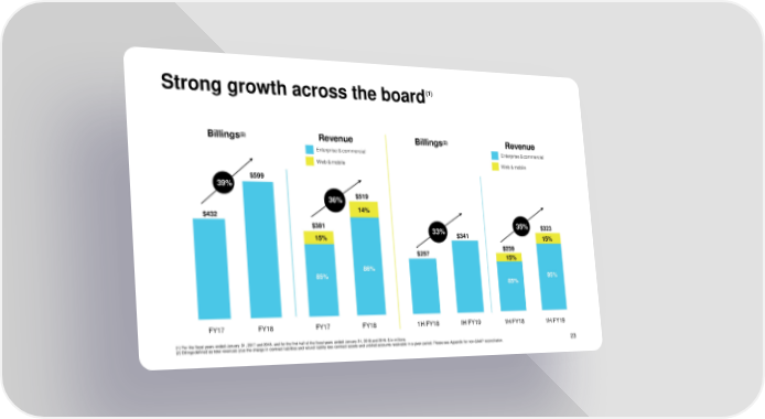 Strong growth across the board(1) Billings(2) Revenue Billings(2) Revenue Enterprise &commercial Enterprise &commercial Web &mobile Web &mobile 39% $599 36% $519 $432 14% $381 33% 35% $323 15% $341 15% $257 $239 15% 86% 85% 85% 85% FY17 FY18 FY17 FY18 1HFY18 IH FY19 1HFY18 1HFY19 (1) For the fiscal years ended January 31, 2017 and 2018, and for the first half of the fiscal years ended January 31, 2018 and 2019. $ in millions. (2) Billings defined as total revenues plus the change in contract liabilities and refund liability less contract assets and unbilled accounts receivable in a given period. Please see Appendix for non-GAAP reconciliation. 23
